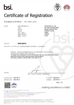 業(yè)內(nèi)率先通過(guò)英國(guó)BSI公司的ISO9001/TS16949(質(zhì)量)、ISO14001(環(huán)境)和OHSAS18001(職業(yè)健康安全)三項(xiàng)標(biāo)準(zhǔn)認(rèn)證;